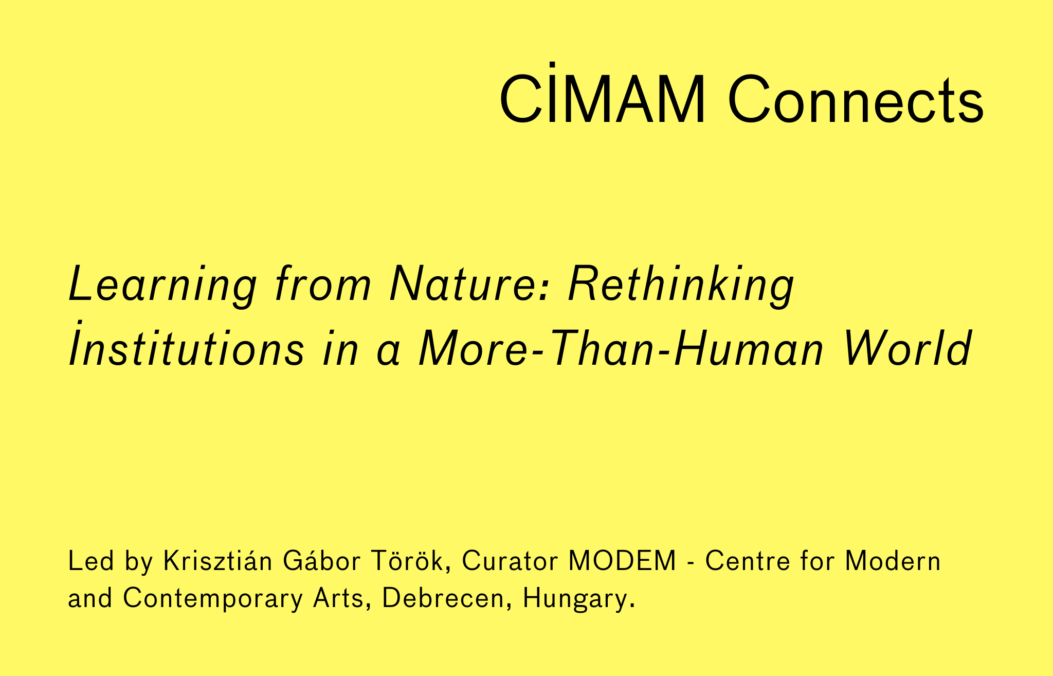 This CIMAM Connects session, proposed and led by Krisztián Gábor Török, explores how art institutions can evolve from static repositories into regenerative, adaptive ecosystems—living systems that mirror the complexity, fluidity, and resilience of the natural world. Inspired by artistic and curatorial practices grounded in ecological thinking, local and indigenous knowledge, and site-specific engagement, this conversation asks: