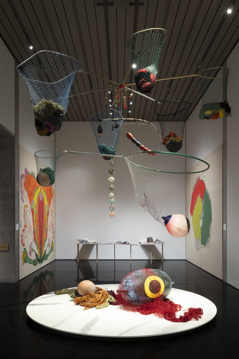 Many of the artists we worked with have social, educational, skill-sharing, or activist elements embedded in their practices; these artists served as guides in prioritizing relationships and process and welcoming uncertainty. For example, many large installations in How to Survive were realized via long-distance collaboration with artists and were fabricated in Anchorage using local and repurposed materials. We embraced unknowns by trusting the process and also acknowledging that the process itself was part of the “final product” we wanted to share and understand. Working this way required tremendous patience, flexibility, humility, and trust—as well as significant imaginative dexterity on the artists’ part. It also required substantial coordination, logistics, and creative problem-solving on the museum side.
