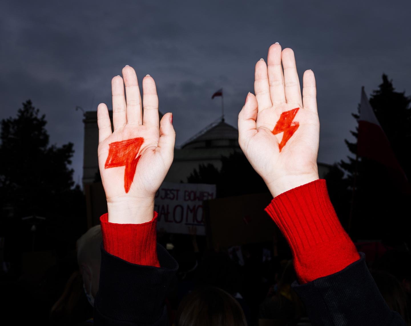 PL: I’m seeing protesters carrying images of a red lightning bolt. What does this refer to?