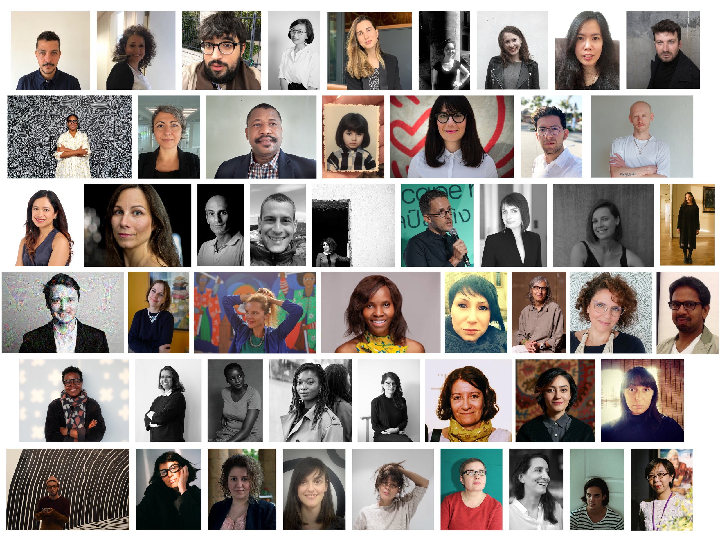 Xavier Acarín, Curator, Barcelona, Spain; Zeina Arida, Director, Sursock Museum, Beirut, Lebanon; Azad Asifovich, Curator, Ta(r)dino 6 Art Platform, Paris/Baku, France/Azerbaïdjan; Mira Asriningtyas, Curator, LIR / 900mdpl, Yogyakarta, Indonesia; Duygu Barlas, Founder Narmanlı Sanat, Istanbul, Turkey; Javiera Luisina Cádiz Bedini, Researcher, Universitat de Barcelona, Spain; Nadejda Cervinscaia, Cultural Manager, POD, Shanghai, China; Hanul Cho, Curator, Researcher, Seoul, South Korea; Endri Dani, Artist and Researcher, ZETA Contemporary Art Center, Tirana, Albania; Janine Gaëlle Dieudji, Exhibitions Director, Museum of African Contemporary Art Al Maaden, Marrakech, Morocco; Duygu Doğan Taupitz, Exhition architect, Production Manager, Arter, Istanbul, Turkey; Dominique Domerçant, Writer, Educator, Founder and Curator, Haiti Women's Museum, Port-au-Prince, Haiti; Salima El Aissaoui, Cultural Mediator, Curator, Mohammed VI Museum of Modern and Contemporary Art, Sale, Morocco; Beatriz Escudero, Exhibitions Department, Es Baluard, Llucmajor, Spain; Jaime Guillermo González Solís, Adjunct Curator, MUAC, Mexico City, Mexico; Michał Grzegorzek, Curator, Ujazdowski Castle Centre for Contemporary Art, Warsaw, Poland; Kristine Guzman, General Coordinator, MUSAC, León, Spain; Susanne Hætta, Author, Artist, Photographer, Vadsoe, Norway; Rebeen Hamarafiq, Artist, Curator, Researcher, Directory of Fine Art, Sulaimanyah, Iraq; Giancarlo Hannud, Curator, São Paulo, Brazil; Lilit Hovhannisyan, Art historian, Curator, Nikolay Nikoghosyan, Cultural Foundation, Yerevan, Armenia; Remy Jarry, Lecturer, Researcher, PhD, Chulalongkorn University, Bangkok, Thailand; Małgorzata Kaczmarska, Art Director, Chef Curator, Associate Professor, PhD in Fine Arts, IMO Gallery of Contemporary Art in Stary Sącz, Kraków, Poland; Anna Karpenko, Curator, Minsk, Belarus; Anastasiia Kharitonova, Curator of Museum Education, The State Hermitage Museum, Saint-Petersburg, Russia; Valentinas Klimašauskas, Curator, Writer, Vilnius, Lithuania; Tatiana Kochubinska, Curator, Kyiv, Ukraine; Inga Lace; C-MAP Central and Eastern Europe Fellow, Museum of Modern Art, New York, Riga, Latvia; Victoria Machipisa, Student, University of Cape Town, Cape town, South Africa; Ana-Maria Maciuca-Pufu, Curator, Bucharest Municipality Museum, Bucharest, Romania; Martina Millà, Head of Exhibitions, Fundació Joan Miró, Barcelona, Spain; Sabrina Moura de Araujo, Curator, Vasto/ University of Campinas, Santana de Parnaíba, Brazil; Riason Naidoo, Curator, Fish Hoek (Cape Town) , South Africa; Gabi Ngcobo, Curatorial Director, Javett Art Centre at UP, Johannesburg, South Africa; Varda Nisar, Phd Candidate/Researcher, Concordia University, Montreal, Canada/Pakistan; Marie Helene Pereira, Director of programs, RAW Material Company, Dakar, Senegal; Nicole Rafiki, Artist and Curator, Oslo, Norway; Fernanda Ramos, Curatorial Assistant and Curator, Museo de Arte Moderno, Mexico City, Mexico; Marcela Romer, Director, National Historic Flag Monument, Rosario, Argentina; Asli Samadova, Founder, Ta(r)dino 6 Art Platform, Baku, Azerbaijan; Marcela Sastre, Director, Fine Arts Museum of Salta, Salta, Argentina; Rogerio Victor Satil Neves, Museologist and Master Student, Budapest, Brazil/Hungary; Alice Scope, Art Curator, Kyiv, Ukraine; Seda Shekoyan, Curator and Researcher, Aliq Media Armenia, Yerevan, Armenia; Ana Škegro, Curator, Head of Experimental and Research Department, Museum of Contemporary Art Zagreb, Zagreb, Croatia; Inger Emilie Solheim, Artist, Writer, Curator, Tromsø, Norway; Yuliya Sorokina, Curator, Tutor, PhD, Asia Art+ Public Foundation, Almaty, Kazakhstan; Alexandra Stock, Creative Director, ARCHiNOS Architecture & Heritage Preservation, Cairo, Egypt; Krisztián Gábor Török, Curator, Budapest, Hungary; Zoe Yeh, Curator, Honggah Museum, Taipei, Taiwan.