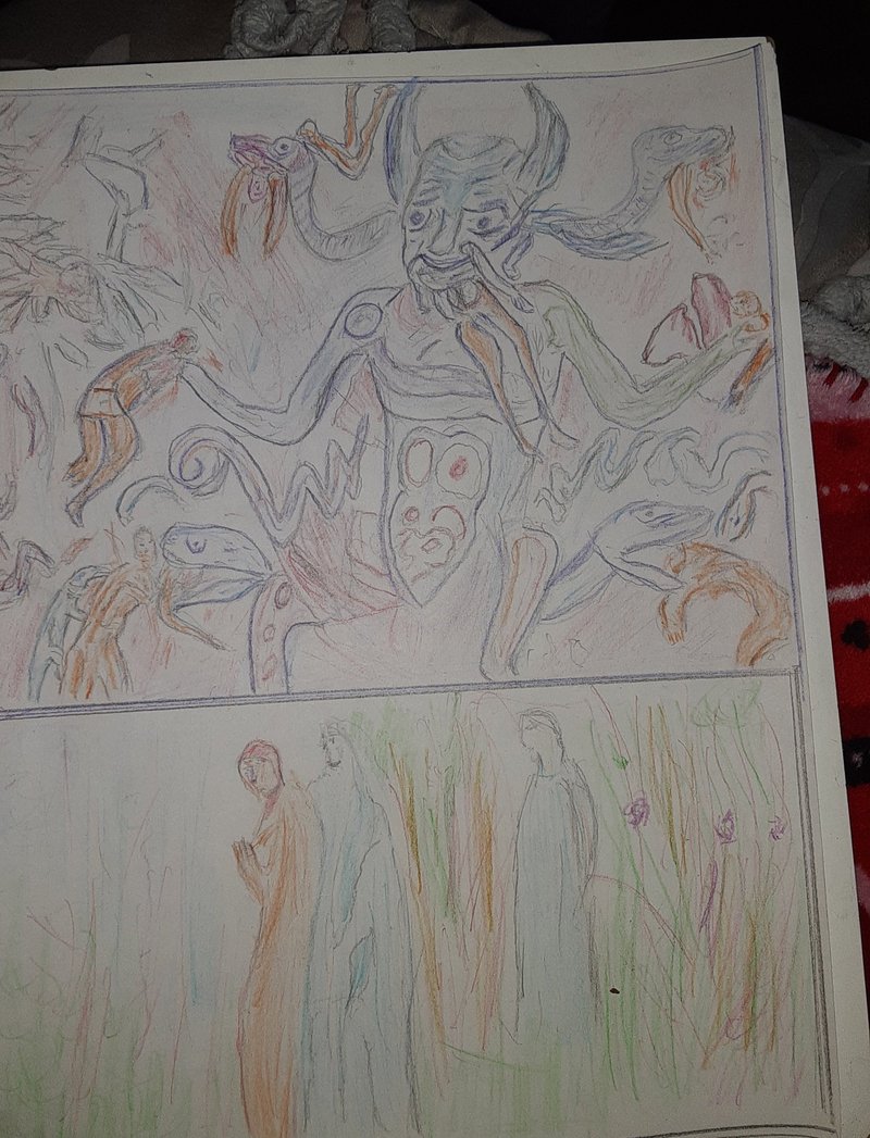 Every Thursday, he waits patiently at the computer for class to begin. For 30 minutes, he fidgets with the colored pencils, pens and papers at the desk inside his daughter’s apartment in Richmond Hill, Queens. And with those tools he creates scenes from his life based on prompts from his instructor: portraits of his mother and friends; images of Goyaesque, nightmarish demons representing disease that when rendered on paper feel less threatening.