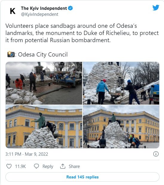 Many art and cultural monuments in Ukraine fall victim to Russia’s full-scale invasion along with civilians. Over the first 20 days of the war, Russian troops damaged libraries, churches, and a mosque, and shelled local historical museums in Chernihiv, Okhtyrka, Ivankiv, an art museum, architectural monuments in Kharkiv, and many more. As of this writing, they dropped a 500-kilo bomb on the Donetsk Regional Drama Theatre in Mariupol, where over a thousand people were hiding from the shelling.