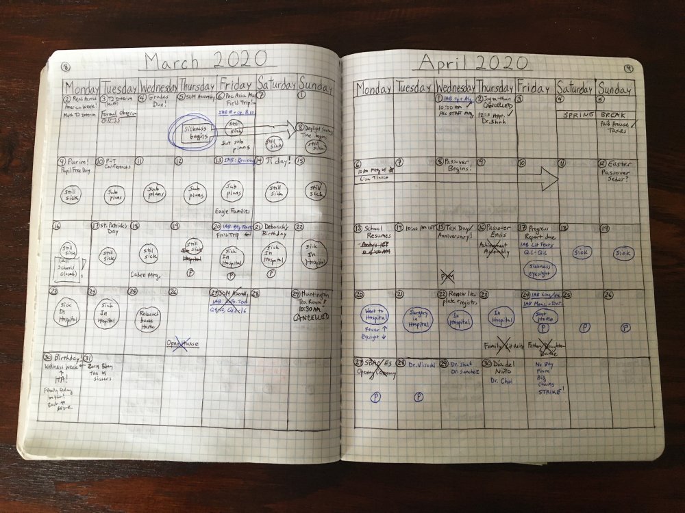 Some of the most powerful visuals are analog. Tanya Gibb, who teaches third grade in Los Angeles, has been keeping a bullet journal for three years, and realized midway through what she thinks was a case of COVID-19 that she was documenting history. In the boxes that had previously recorded commitments like parent-teacher conferences or her twin sister’s birthday tea, she wrote “STILL SICK.” She was briefly hospitalized in March and re-admitted a month later, and had to undergo emergency surgery to save her eyesight. Days after her release from the hospital, she noticed one of her favorite museums, the Autry Museum of the American West, had posted a Facebook callout for submissions, and she emailed a picture of her journal.