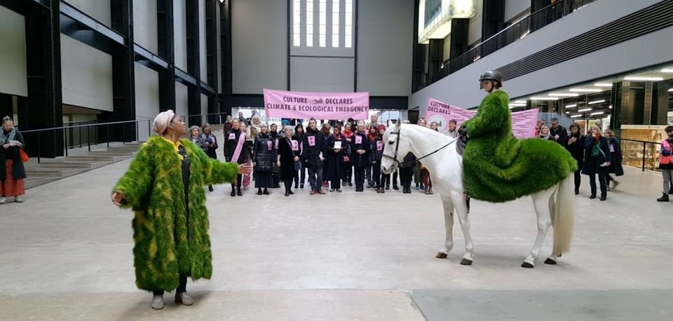 It’s now more than a year since Culture Declares Emergency was launched in London by sending a white horse and a procession of bell-ringing artists and workers from across the cultural sectors into Tate Modern’s Turbine Hall. The museum’s director Frances Morris gave this peaceful invasion her full consent and three months later, on 17 July 2019, Tate made the step of formally declaring a climate and ecological emergency.
